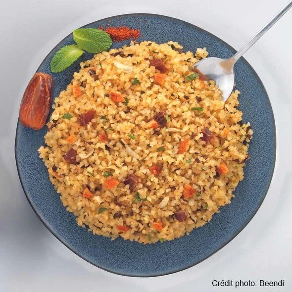 Boulgour fin* (80,7%), dattes* (10%), écorce d'orange* (2%), oignons*, poudre d'orange*(1,6%), menthe*(1,4%), sel de Guérande, cumin* (0,7%), persil*, paprika*.